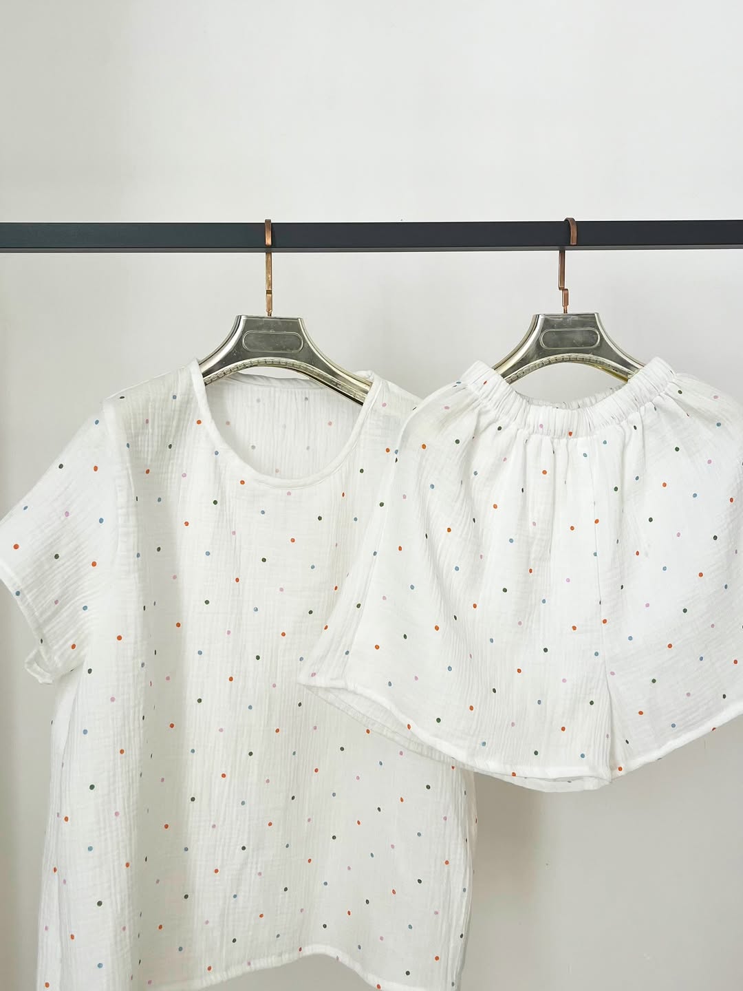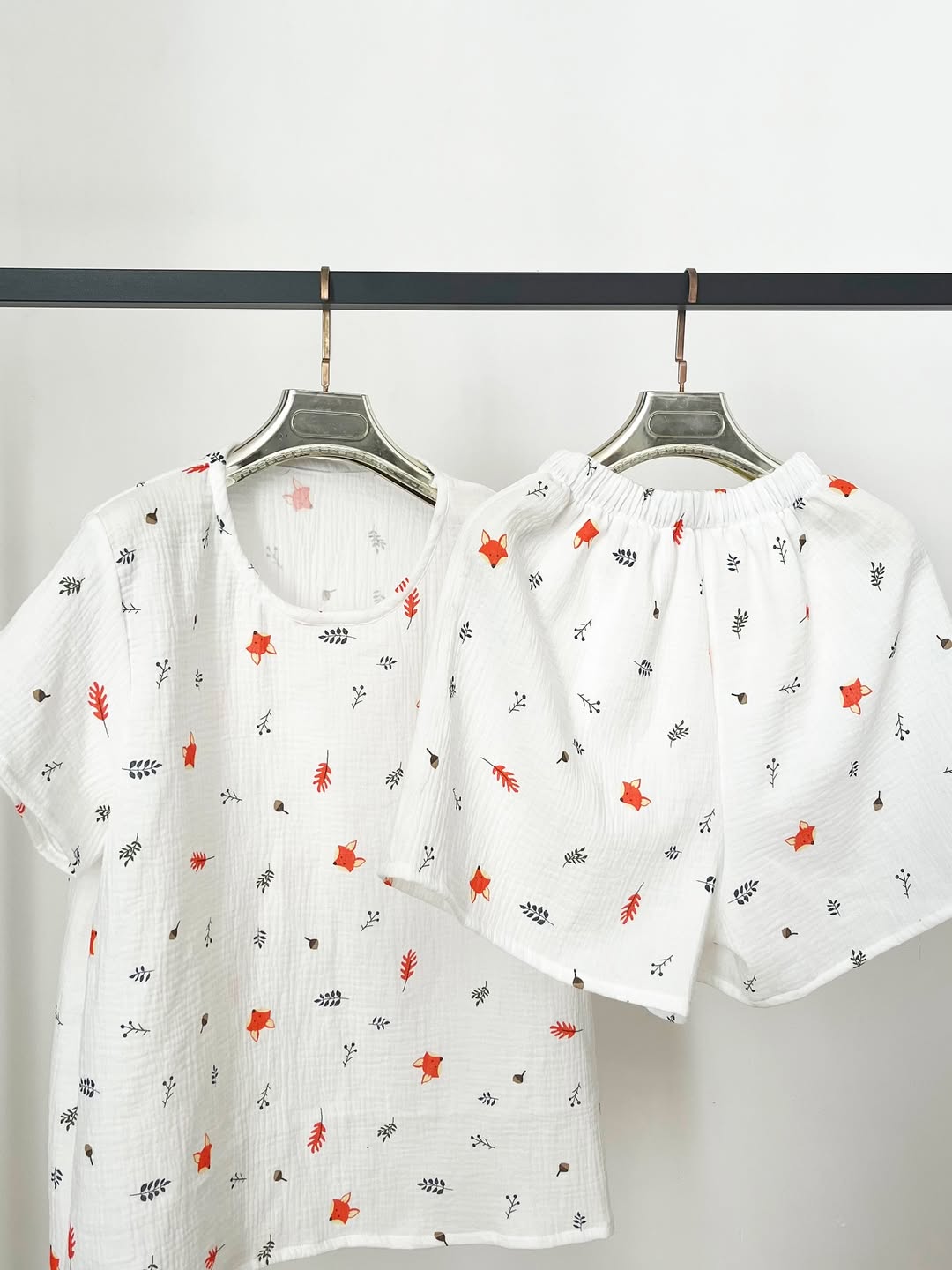 ست تیشرت و شورتک موسلین خارجی دولایه فری تا ۴۶